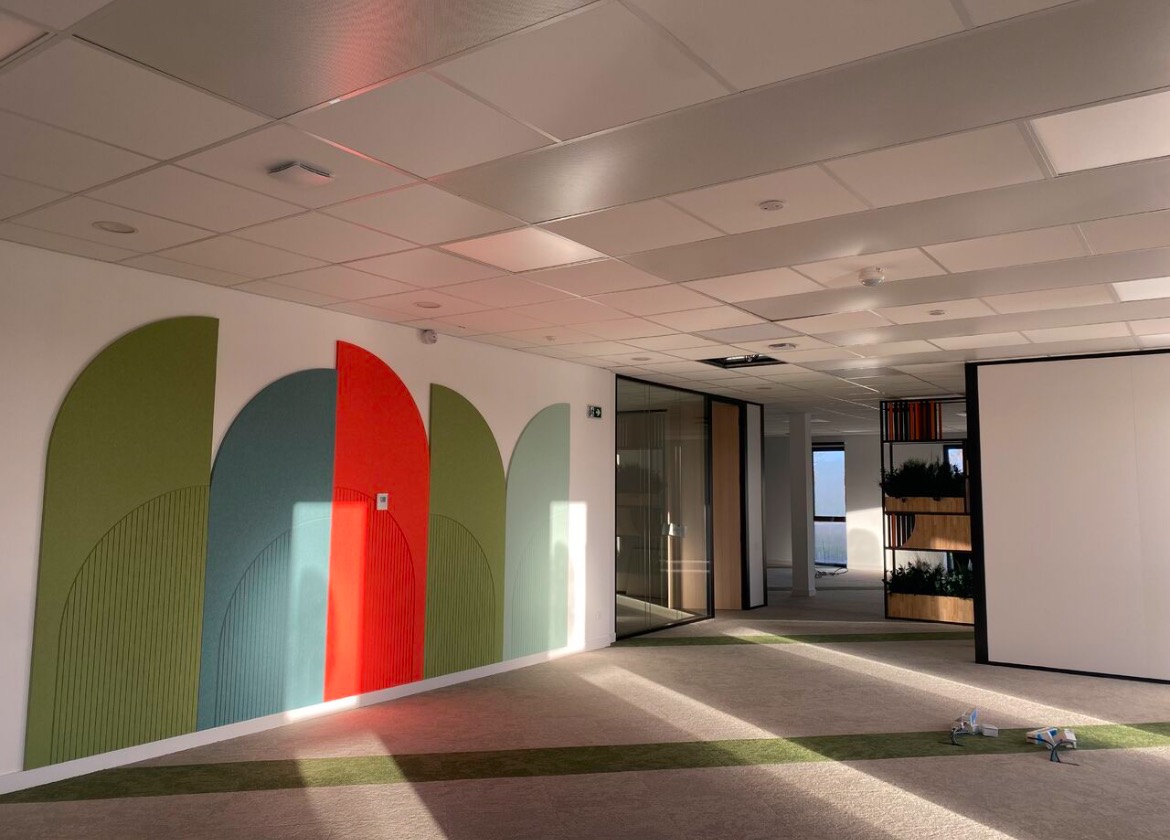 - La double fonction : tous nos panneaux sont réalisables sous forme de panneaux pleins mais aussi sous forme de panneaux acoustiques muraux décorés ou de panneaux acoustiques avec perforations.